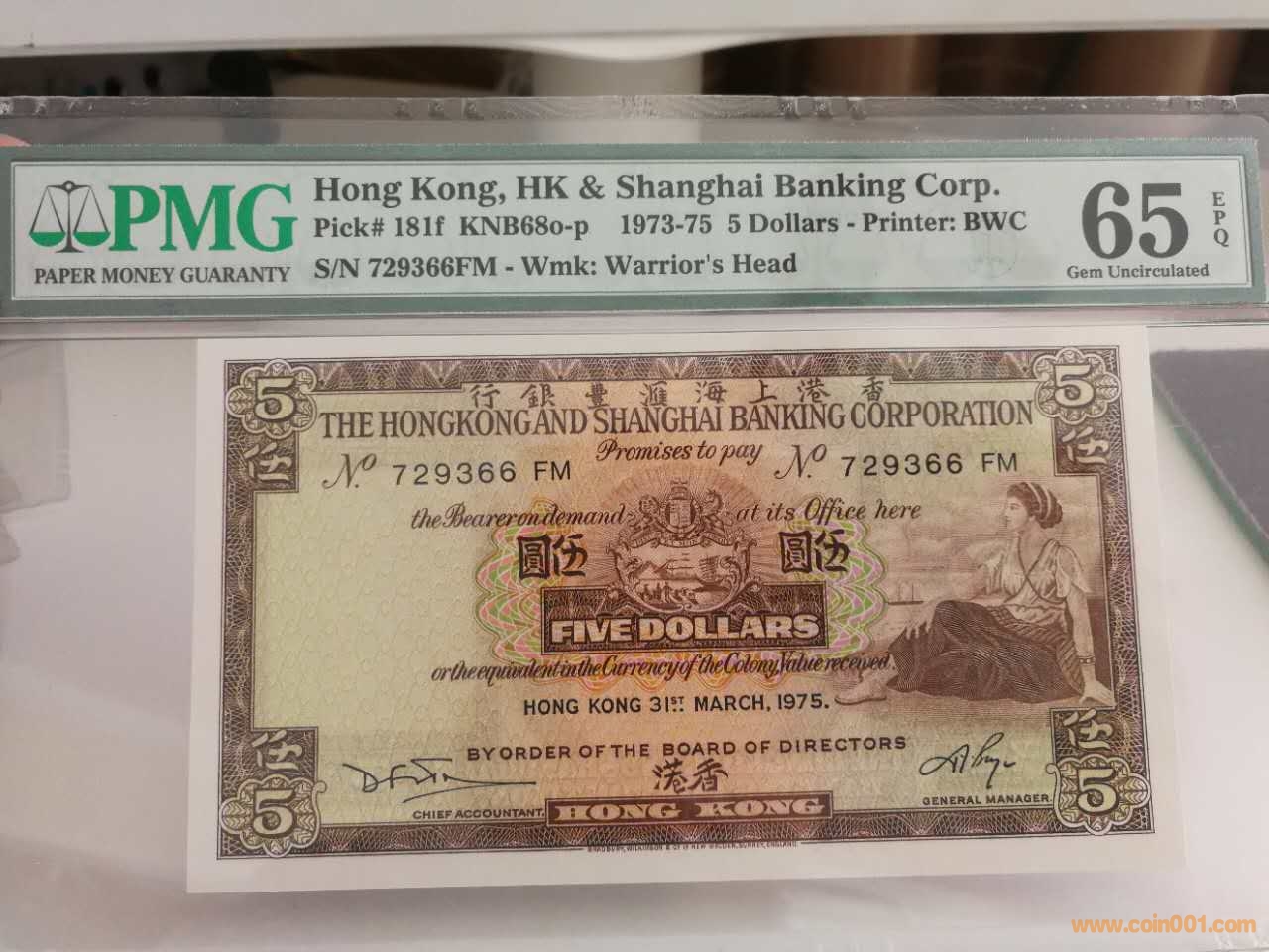 1973-75匯豐5元PMG 65
