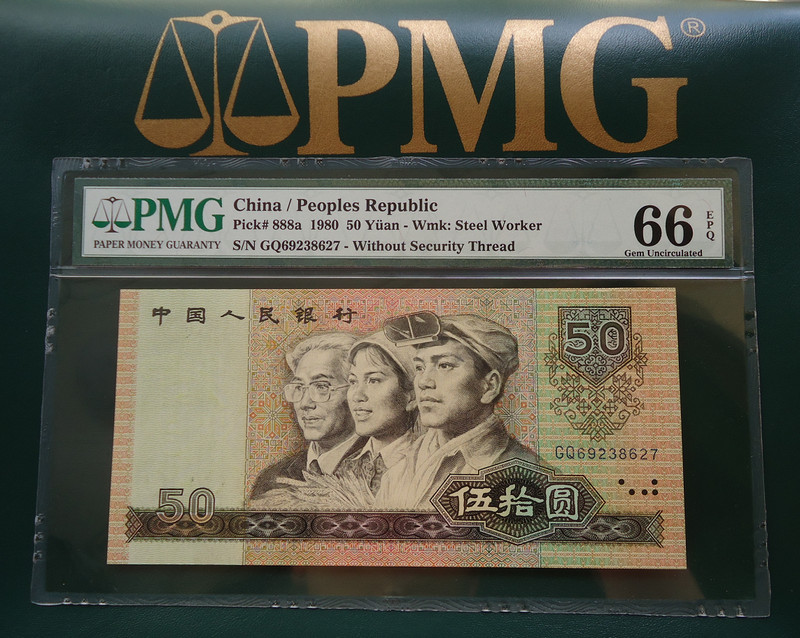 13拍 0元起拍 第三版人*民*幣 PMG 66分 伍角紡織 平版無水印 全程無47尾222的豹子號 珍品的老紙鈔 搶手的熱門牛貨! 剛嚴評回來的第三代PMG高清盒!