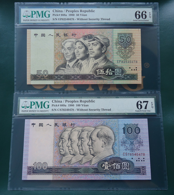 10拍 0元起拍 第四版人*民*幣 PMG 67分 9050+90100 二張都是全程無4尾57 靚號+尾二同號+同分 一流珍品 罕見 一起拍 剛嚴評回來的第三代PMG高清盒!都是絕中絕的刀貨送評回來的!大票面一流珍品的同分稀少!