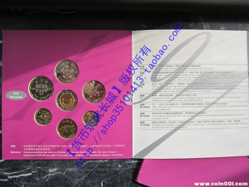 售:1997年香港紀念新鑄錢幣套裝-普制(類精制)套幣原封冊