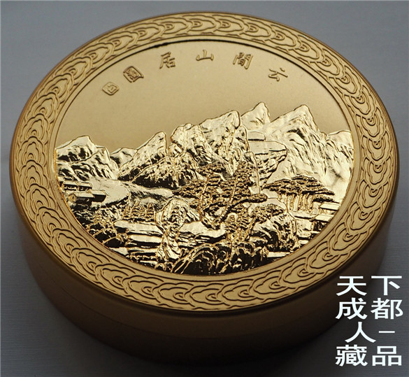 該長(zhǎng)形私*章金屬盒外觀四面山水浮雕畫(huà)圖,四周分別刊有古代著名五言詩(shī)詞;印泥盒蓋浮雕山川畫(huà),上方刊“云間山居圖”字樣;高雅文房用品、浮雕鍍金制作工藝精美,集山水、書(shū)畫(huà)、古詩(shī)詞與一體,增添其文房小件風(fēng)雅品味,具有較高實(shí)用趣味價(jià)值(品如實(shí)物圖):