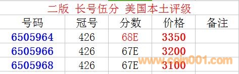 [font=arial;] 多網同售,具體號碼以我確認為準。 [font=arial;] 公司主營[font=arial;] 評級幣種:一版/二版/三版/紀念鈔/外匯券等[font=arial;] 有需要詳細圖片的朋友,請加QQ或是微信:80166370 [font=arial;] 聯(lián)系電話:189 1622 4219,手機號也是微信號[font=arial;] 溫馨提示:[font=arial;] 關于評級鈔,評級公司是鑒于紙張材質、油墨色澤、圖案位置、[font=arial;] 尺寸大小等等諸多因素綜合打分的。[font=arial;] 評級幣品相是以分數(shù)為準的,評級幣包真品,如假包退!