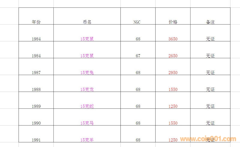 評級普通(精制)紀念幣交易