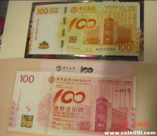 售香港和澳門中行百年紀(jì)念鈔全同號一對