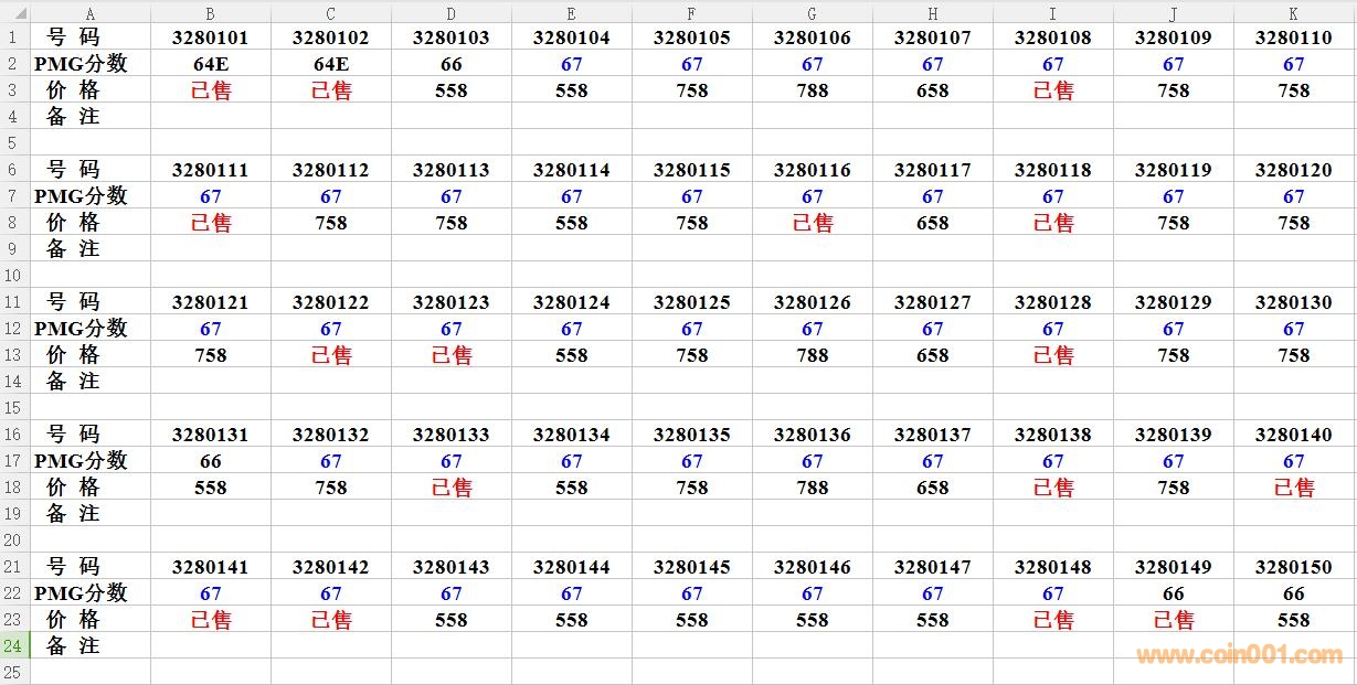 評級普通(精制)紀念幣交易