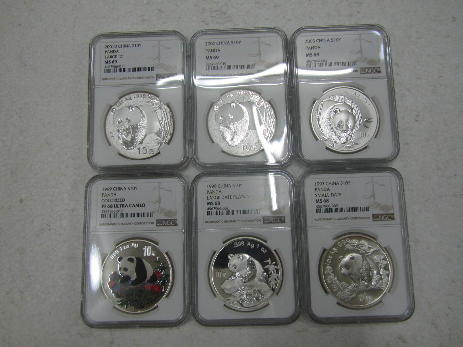 2002年1盎司熊貓銀幣2枚,評(píng)級(jí)幣,NGC69分,價(jià)格650元/枚