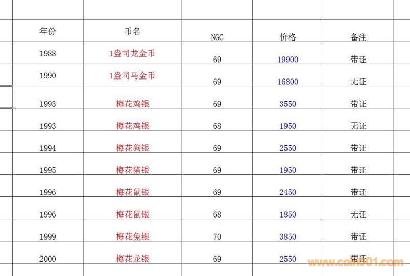 評級普通(精制)紀念幣交易