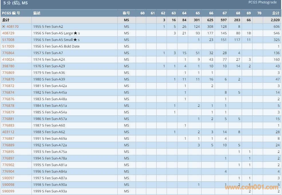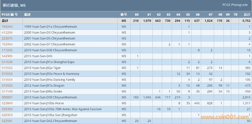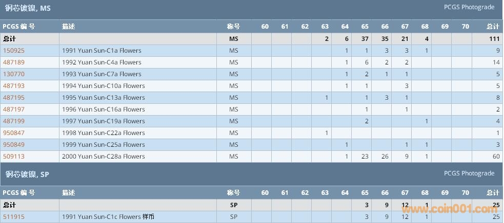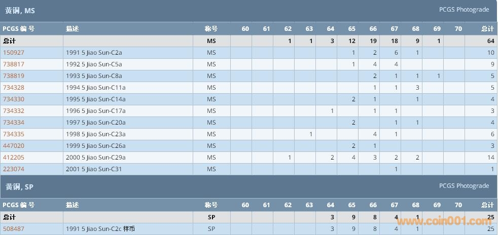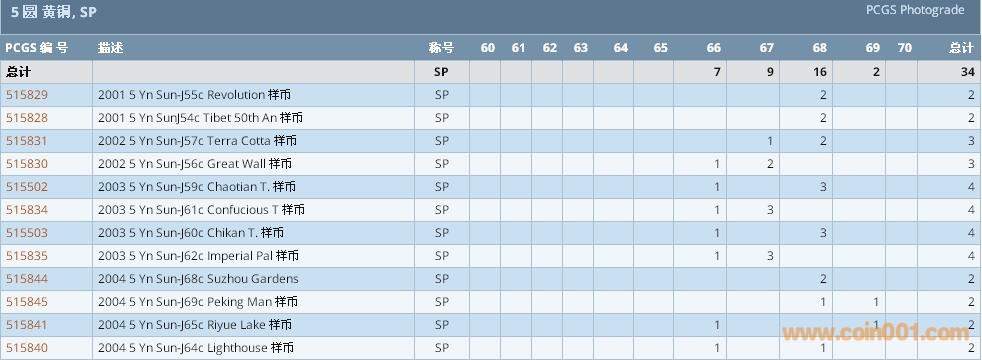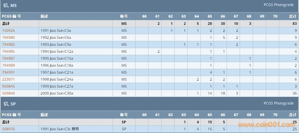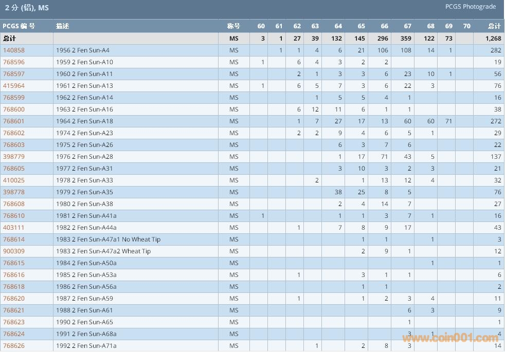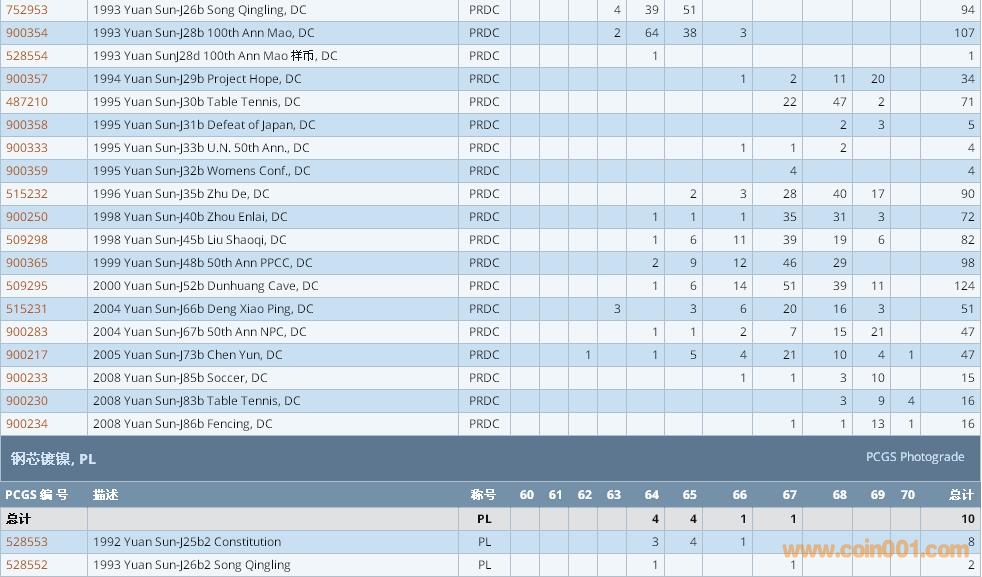 PCGS硬幣評級數(shù)量報告 ..