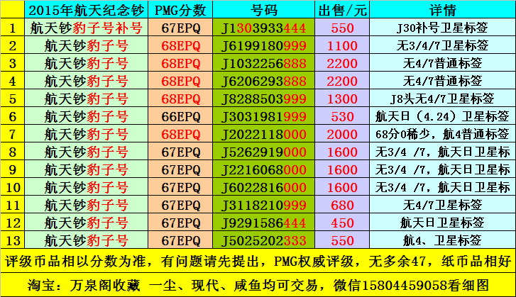 出售:PMG67-68分航天鈔 ..