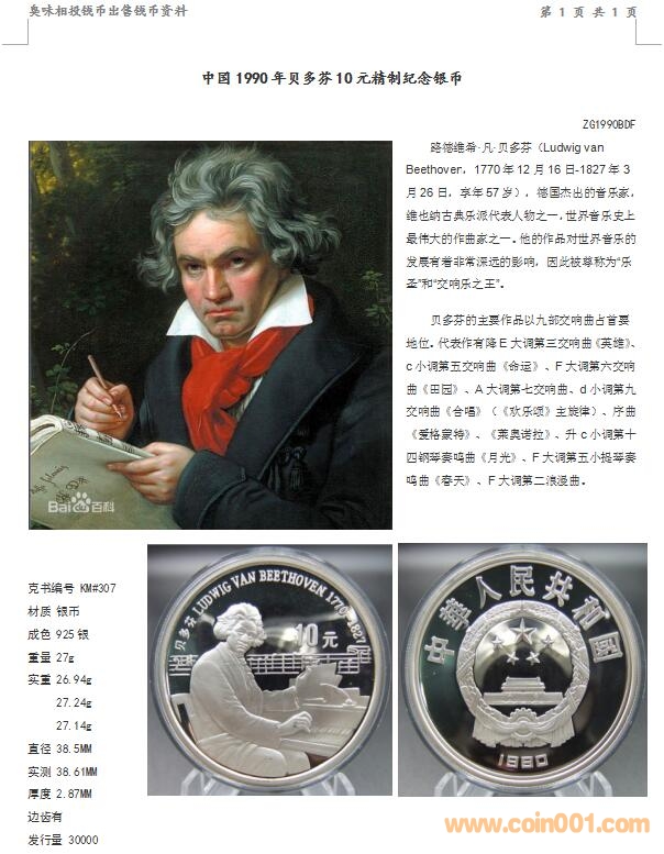 中國1990年貝多芬10元 ..