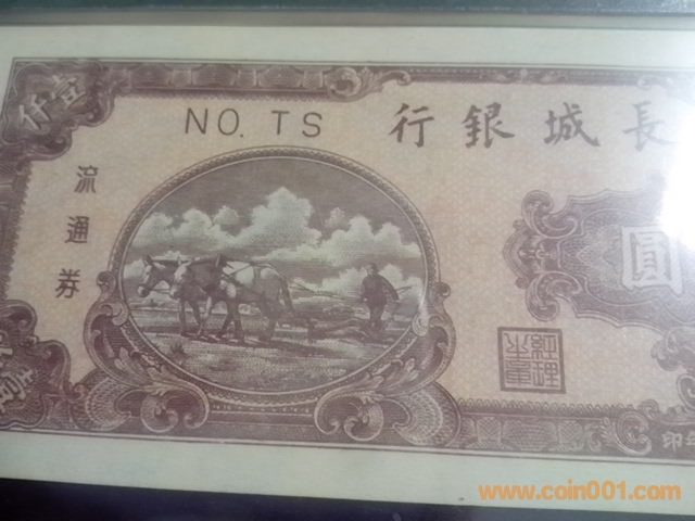 稀少存世長城銀行,早期雙馬耕地壹仟元,已知評(píng)級(jí)冠軍分?jǐn)?shù),64分極難得,菱形防偽水印版,3000
