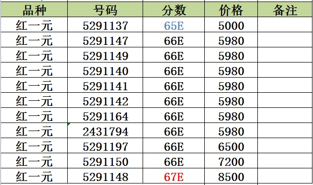 出售紅一元 PMG66-67E