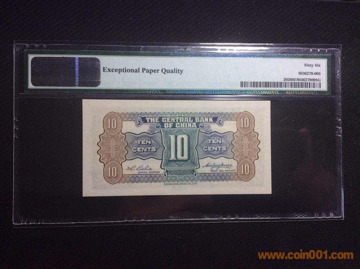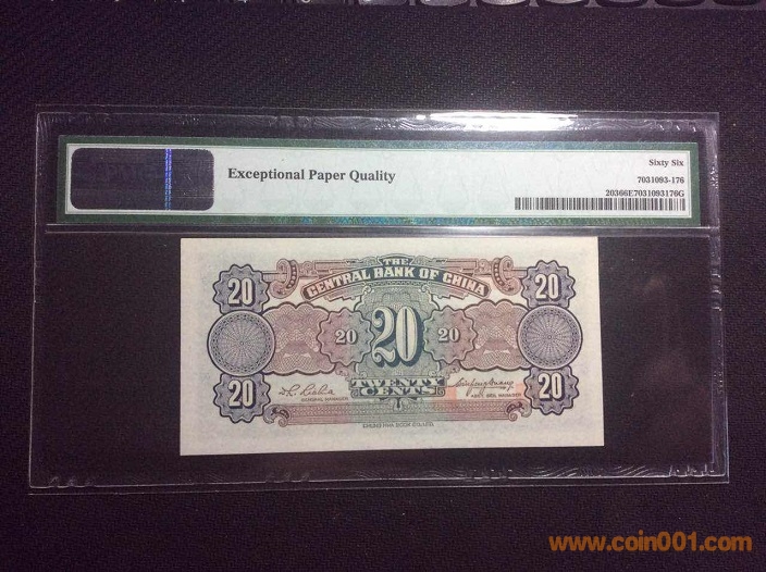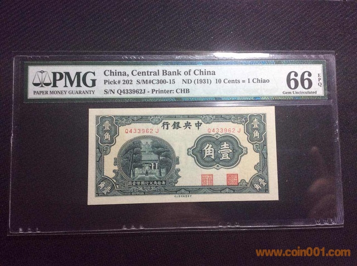 3、中央銀行杏壇1角(1931年) PMG66E 433962# ¥290
