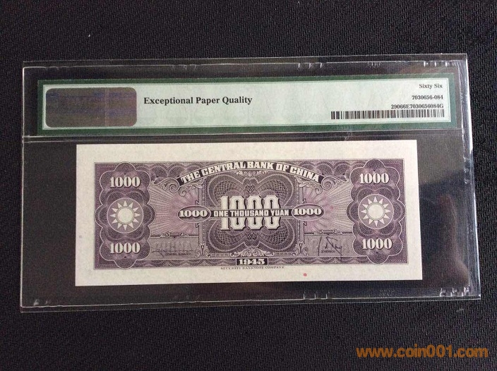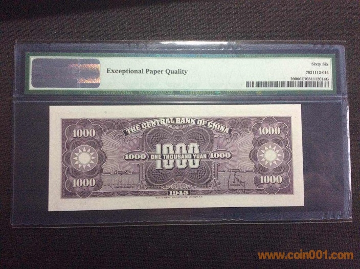 11、中央銀行1000元(1945年) PMG66E 012983# ¥300