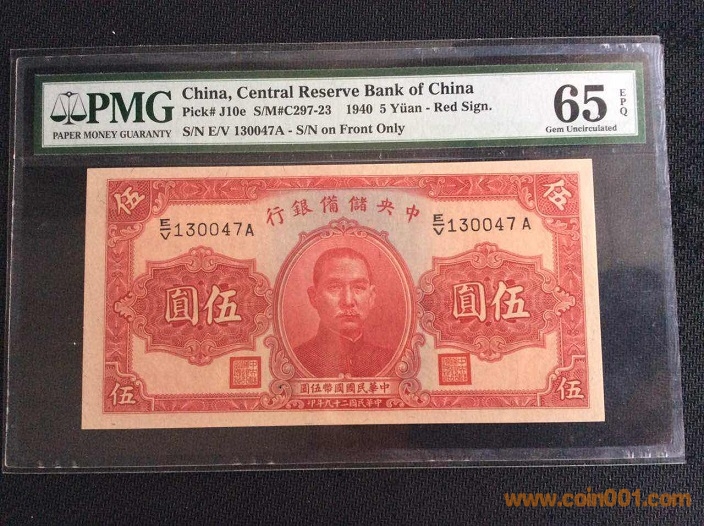 2、中央儲備銀行5元(1940年) PMG65E 130047# ¥360