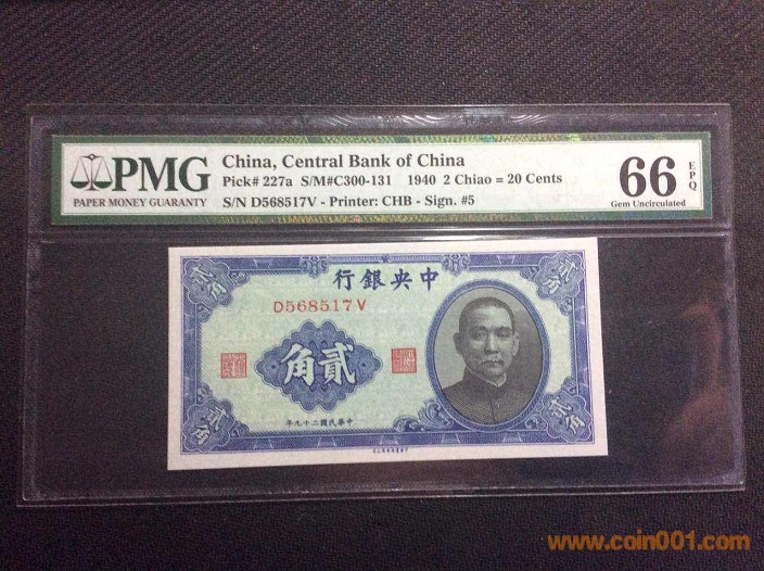 6、中央銀行2角(1940年) PMG66E 568517# ¥288