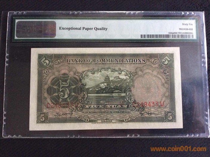15、交通銀行5元大帆船(1935年) PMG66E 248434# ¥530