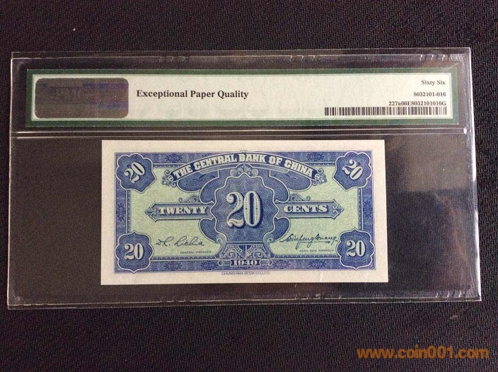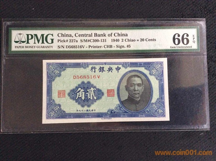 5、中央銀行2角(1940年) PMG66E 568516# ¥290