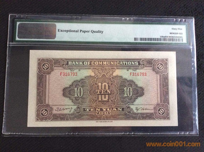 17、交通銀行10元火車頭(1941年) PMG65E 316793# ¥460