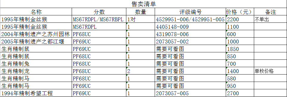 售精制評級幣若干( ..