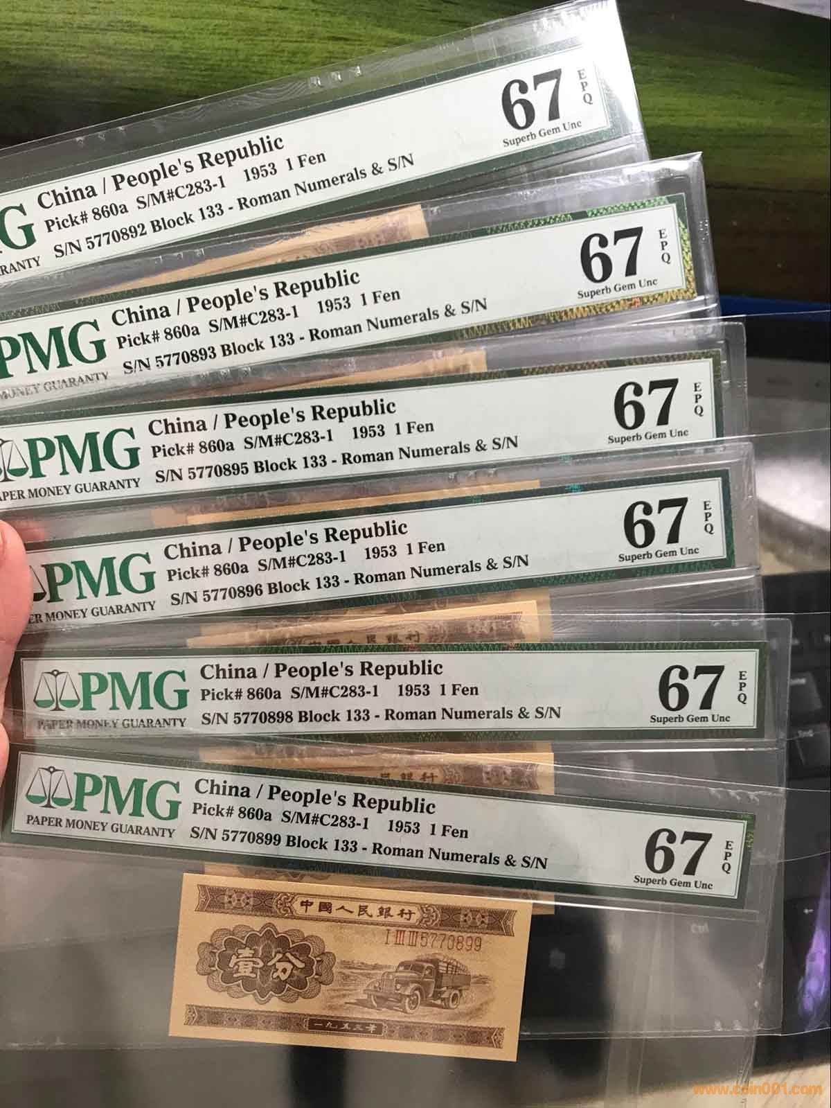 溫馨提示:關(guān)于評(píng)級(jí)鈔,評(píng)級(jí)公司是鑒于紙張材質(zhì)、油墨色澤、圖案位置、尺寸大小等等諸多因素綜合打分的,評(píng)級(jí)幣是按品相來(lái)定分?jǐn)?shù)的!