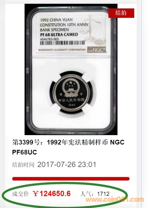 評(píng)級(jí)普通(精制)紀(jì)念幣交易