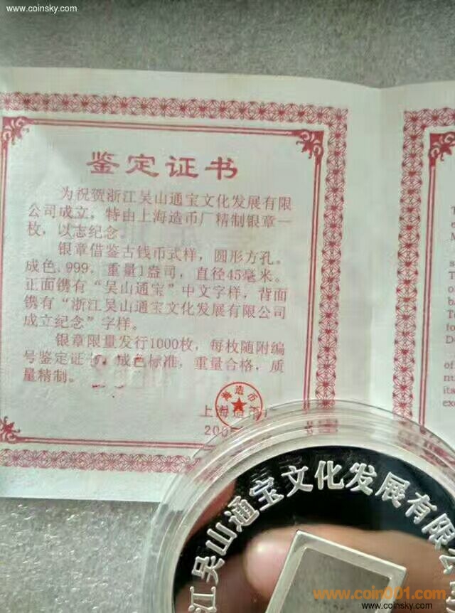 上幣吳山通寶純銀精 ..