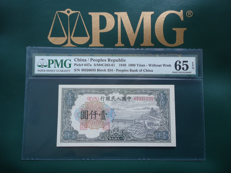 第一版 1000元面值的錢塘江 PMG 65分 9800元!