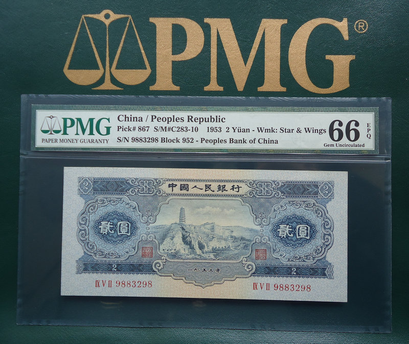 第二版 寶塔山貳元 PMG 66分 9883298 售6800元!