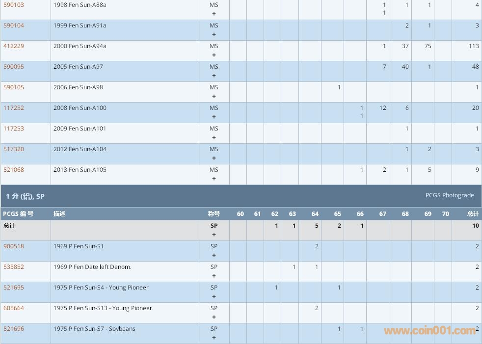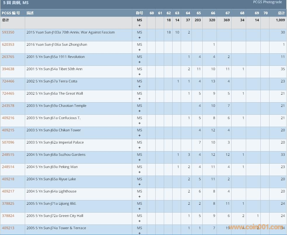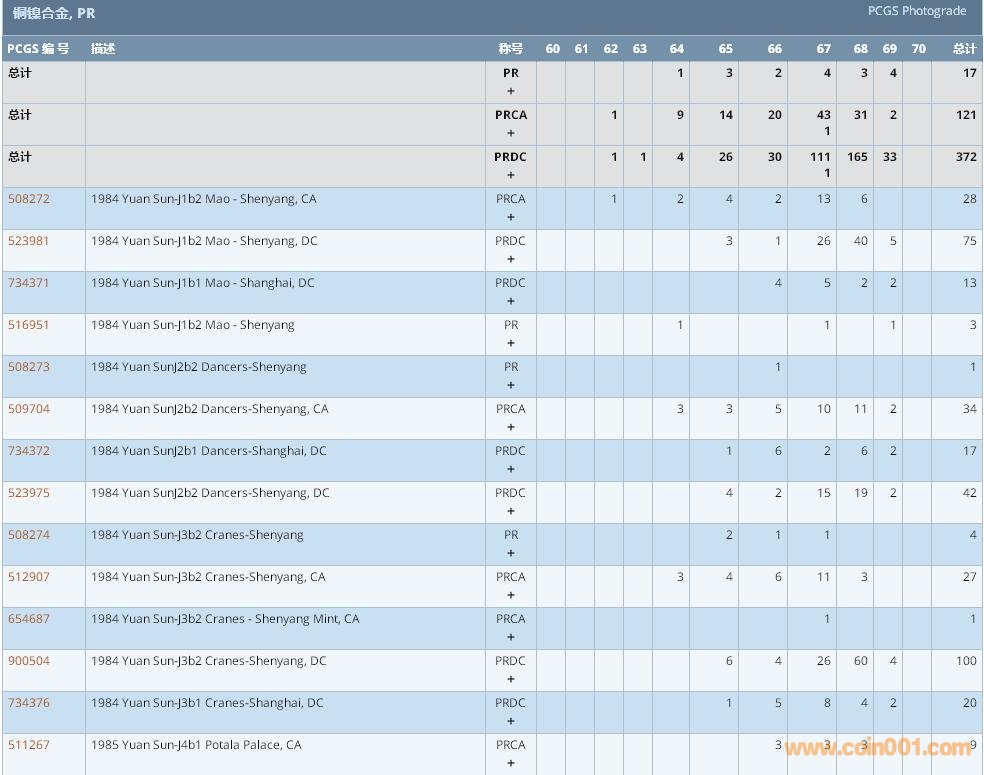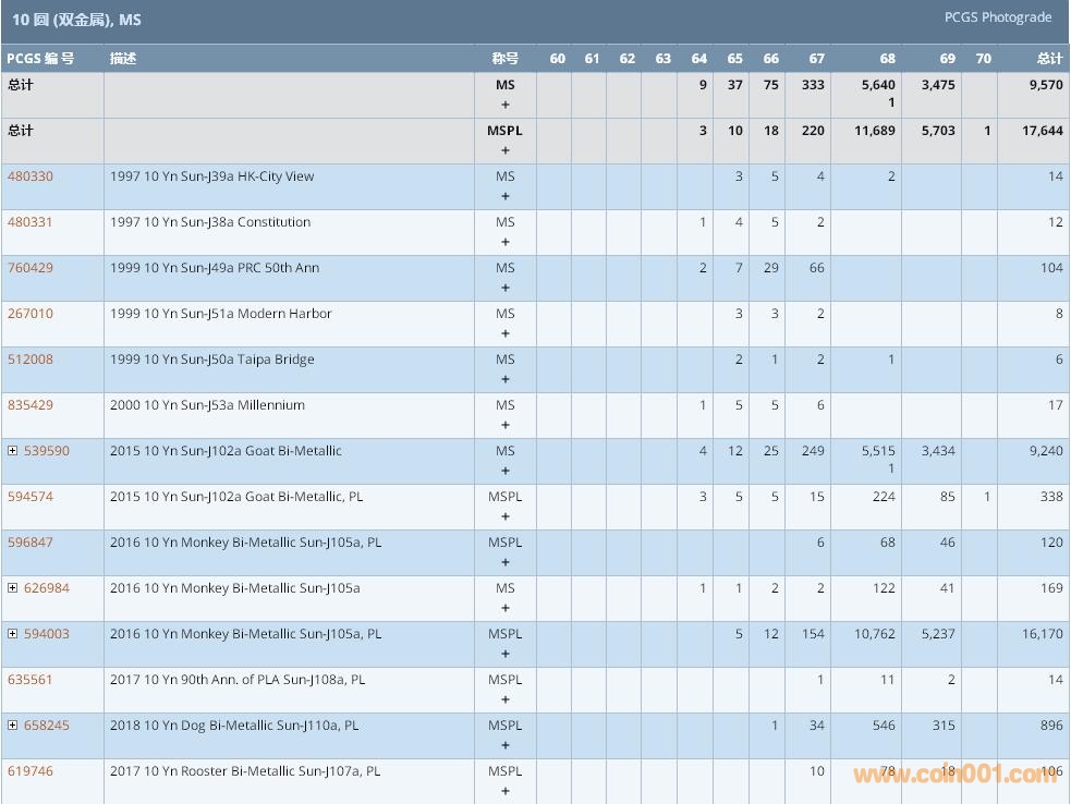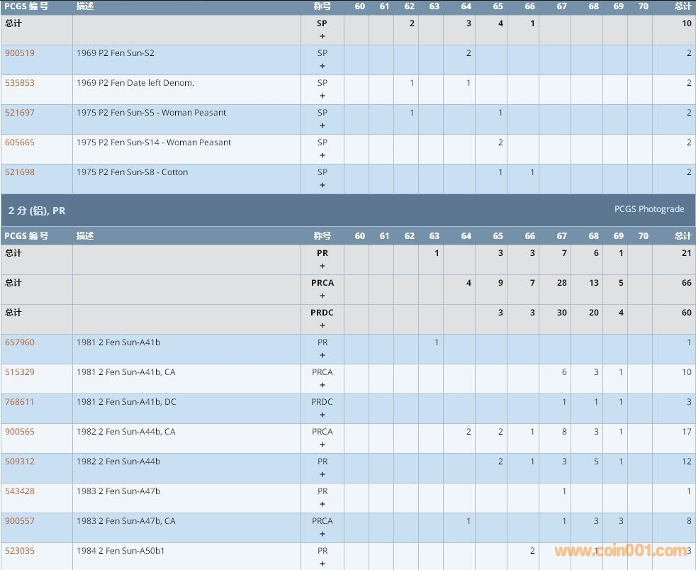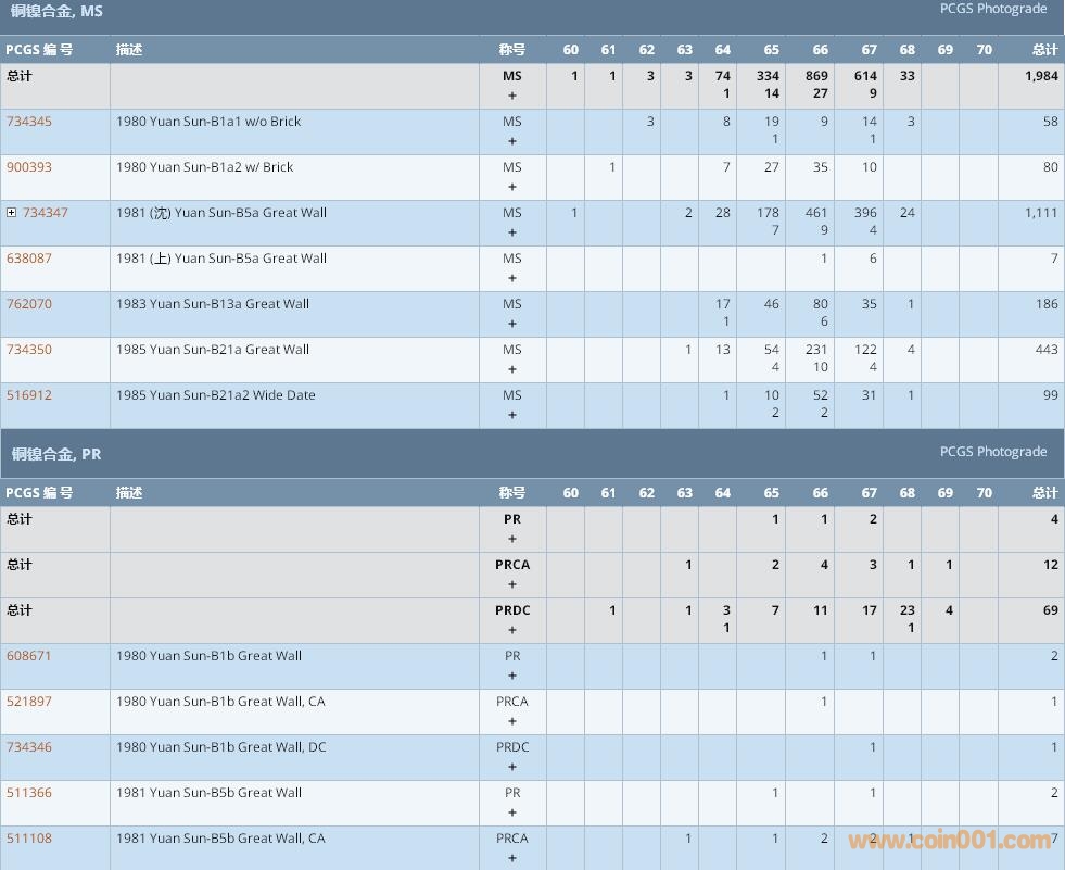 PCGS硬幣評級數(shù)量報告 ..