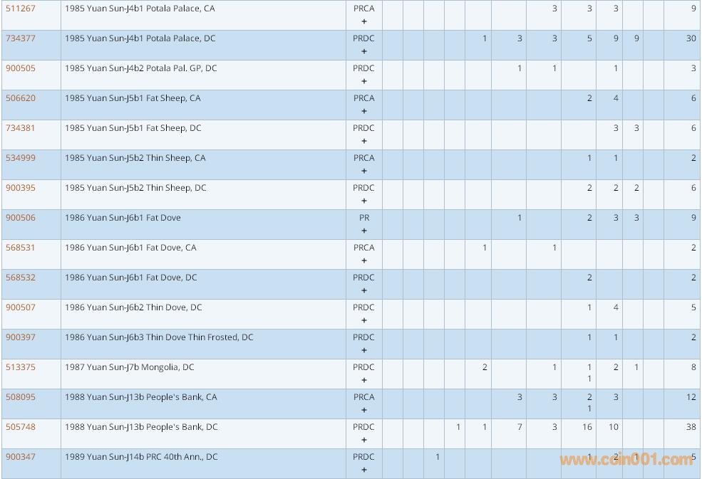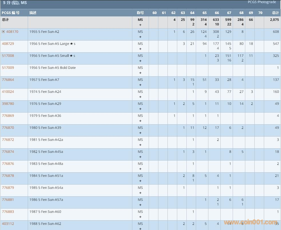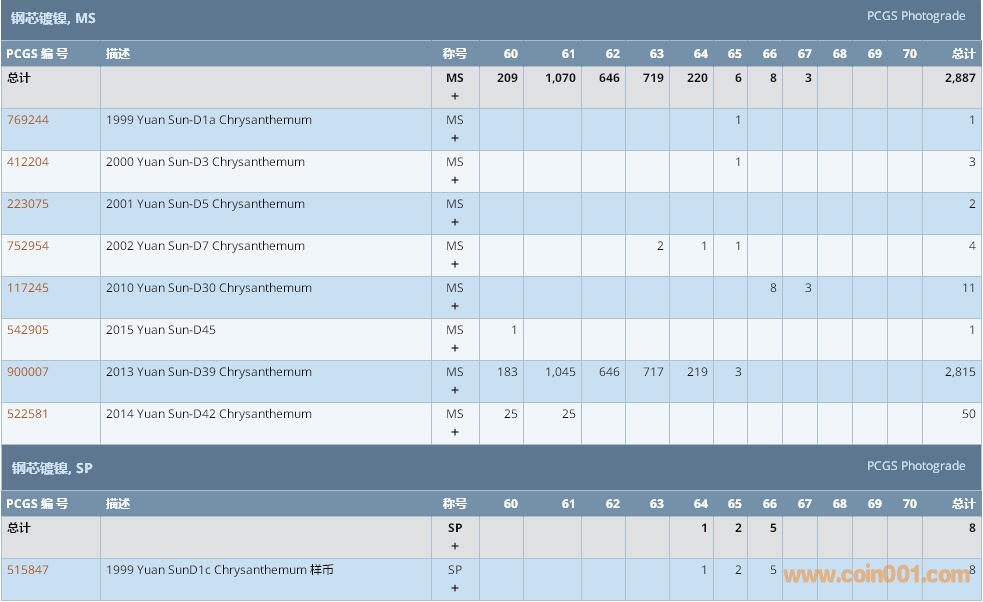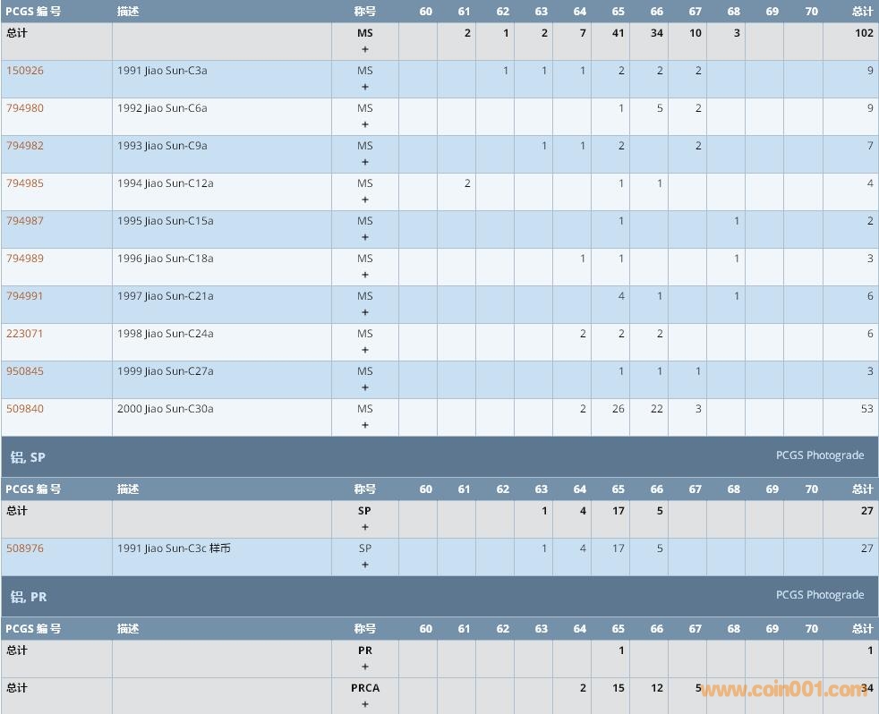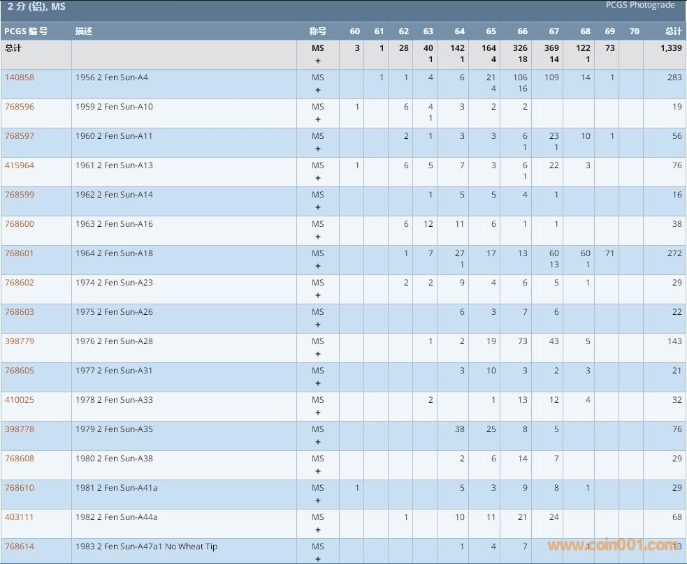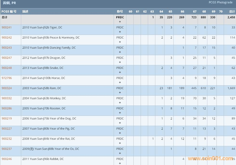 PCGS硬幣評級數(shù)量報告 ..