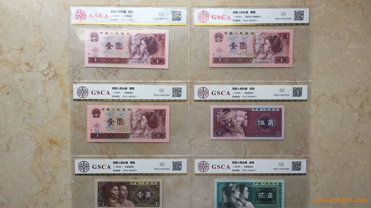 1)80版+90版100元劵各一枚;(2)80版+90版50元劵各一枚;80版50元(第四人*民*幣鈔王,罕見)(3)80版10元劵一枚;(4)80版5元劵一枚;(5)80版+90版2元劵各一枚;(6)80版+90版+96版1元劵各一枚;(7)80版五角劵一枚;(8)80版兩角劵一枚;(9)80版一角劵一枚;最大特點:中國人民銀行發(fā)行的第四套人*民*幣全套九種劵別“末三位”數(shù)字編號全部相同