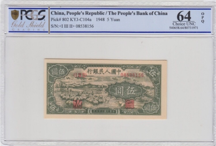 一版5元牧羊PCGS64OPQ 售 ..
