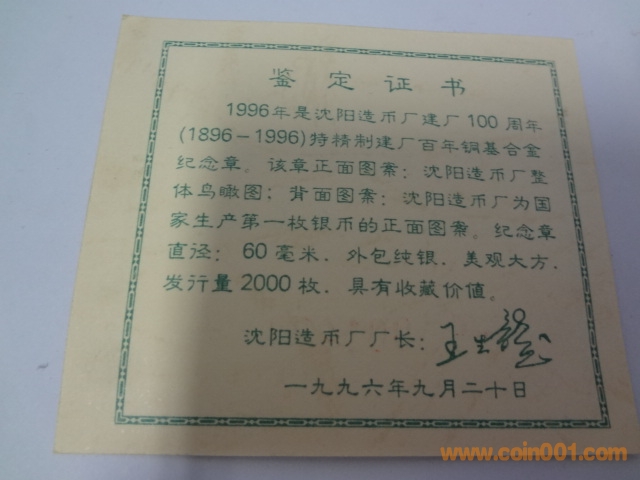 沈陽造幣廠100周年60毫 ..