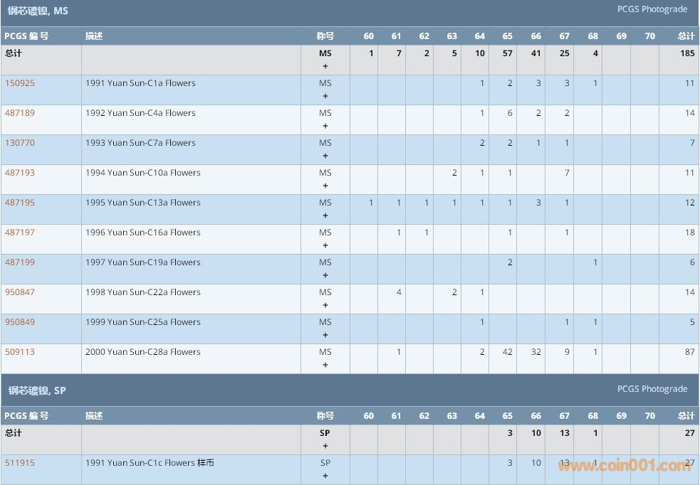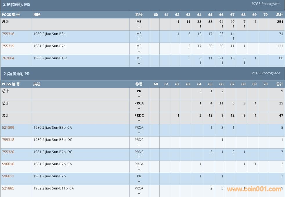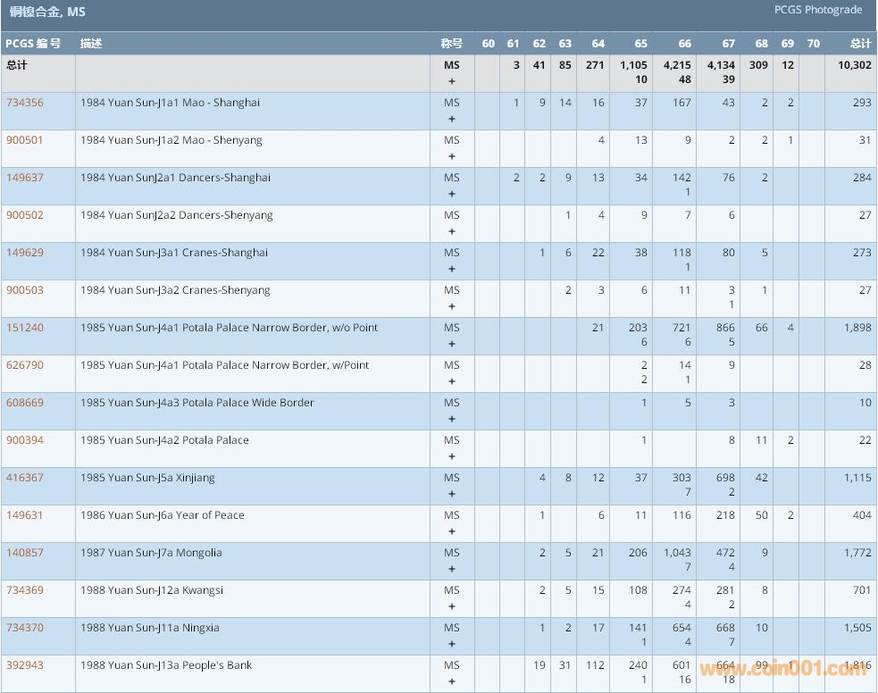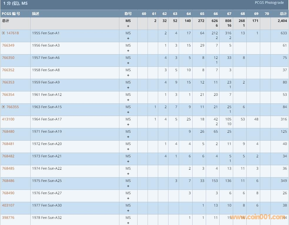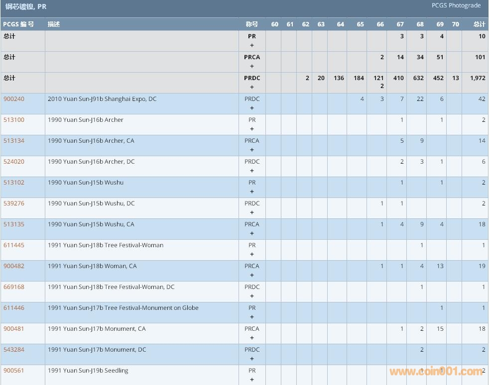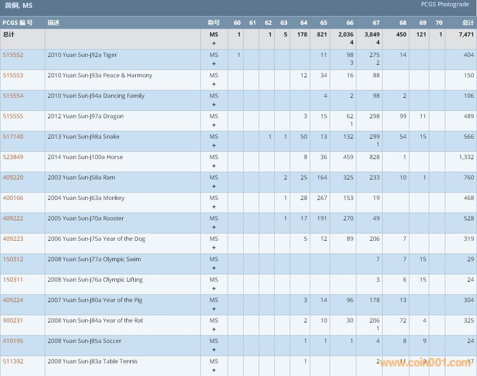 PCGS硬幣評級數(shù)量報告 ..