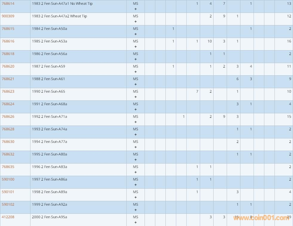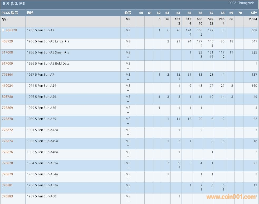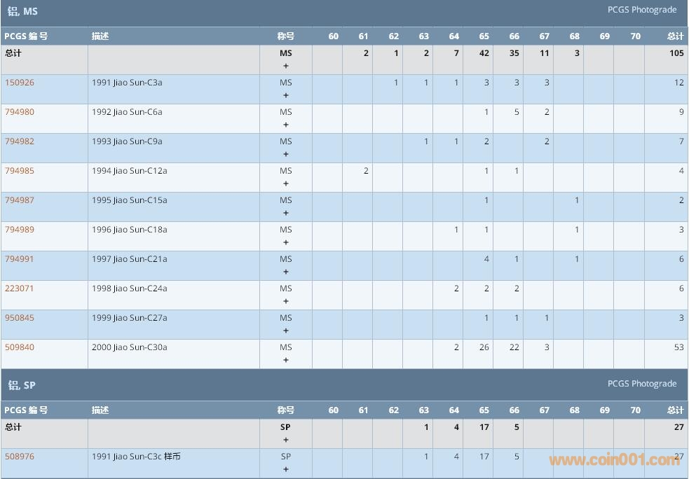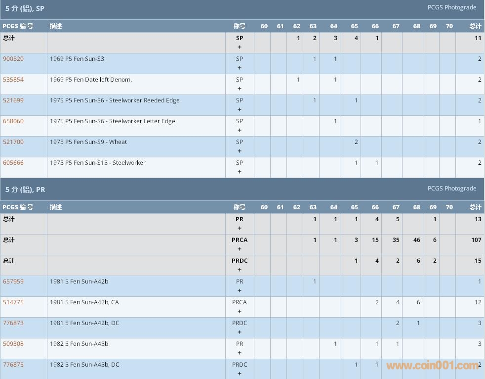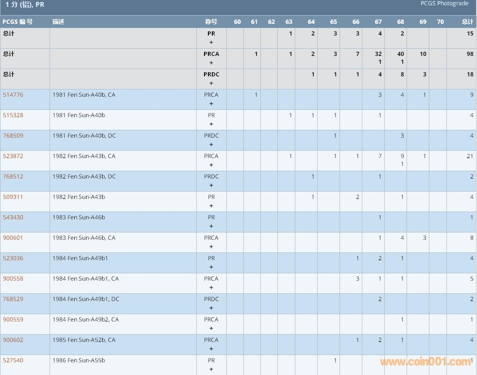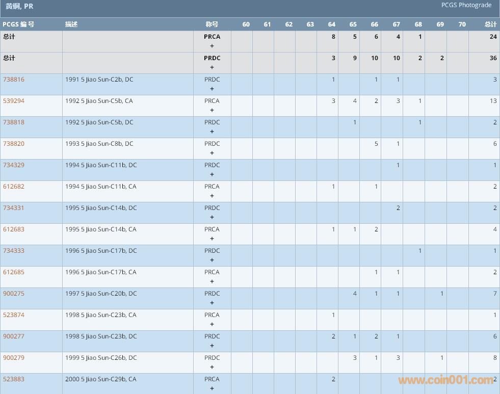 PCGS硬幣評級數(shù)量報告 ..
