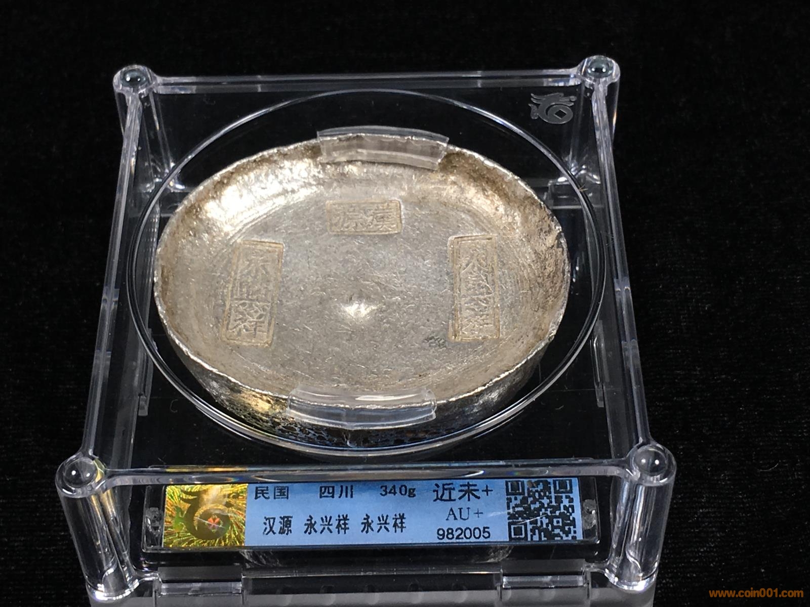 圖片:LOT 19 清代 四川 十兩銀錠 漢源 永興祥 近未+au+ 重340g  評(píng)級(jí)編號(hào)982005 (1).JPG
