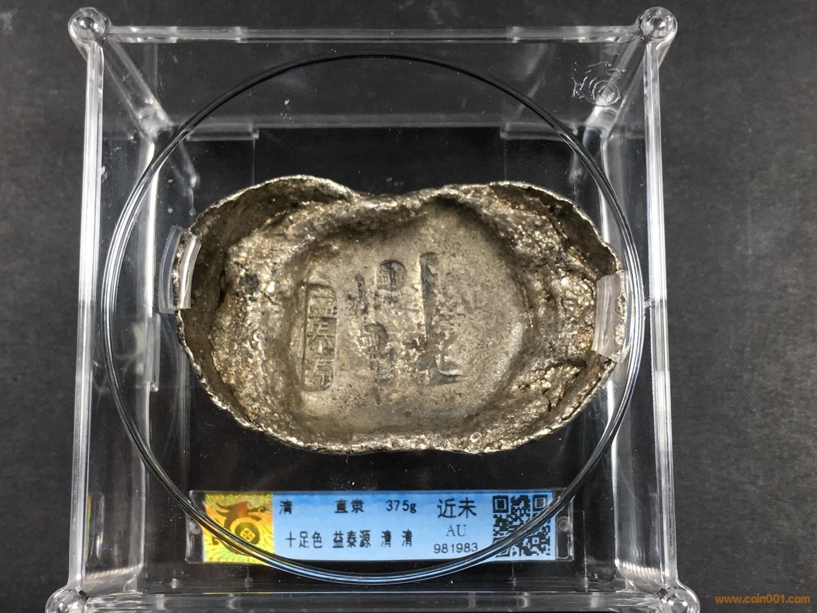 圖片:LOT 09 清“十足色益泰源 清 清”十兩銀錠 華夏評(píng)級(jí) 近未AU 重375g  評(píng)級(jí)編號(hào)981983 (1).JPG