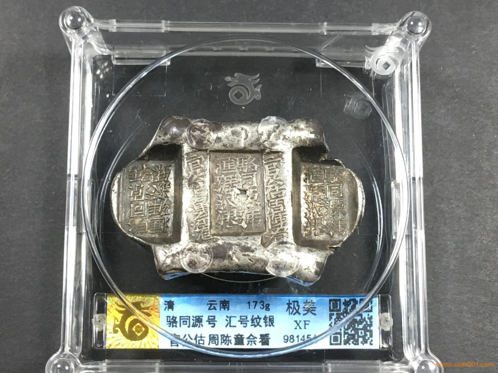 圖片:LOT 11 清代 云南牌坊錠 華夏評(píng)級(jí) 極美XF 駱同源號(hào) 匯號(hào)紋銀 官公估周陳童佘看 重173g  評(píng)級(jí)編號(hào)981451 (1).JPG