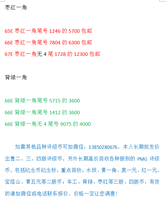 評級普通(精制)紀念幣交易