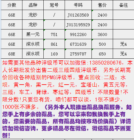 評級普通(精制)紀念幣交易