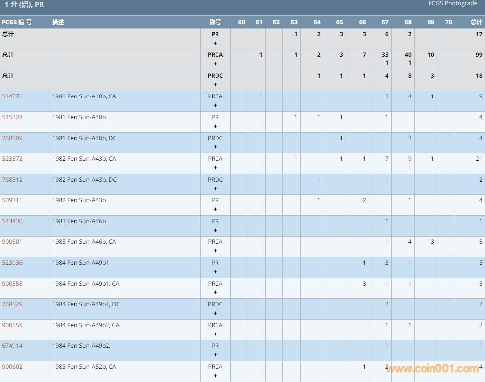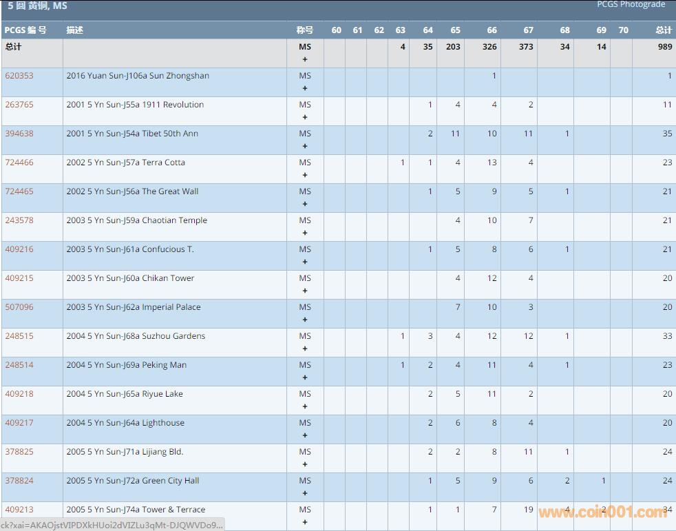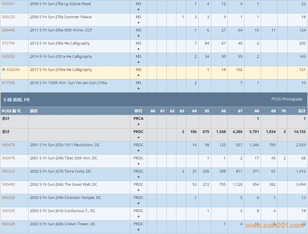 Re:PCGS硬幣評級數(shù)量報 ..