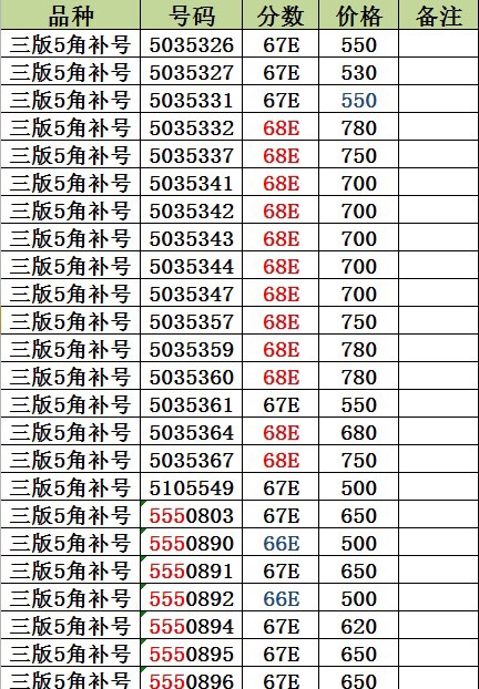 出售三版5角補(bǔ)號(hào)