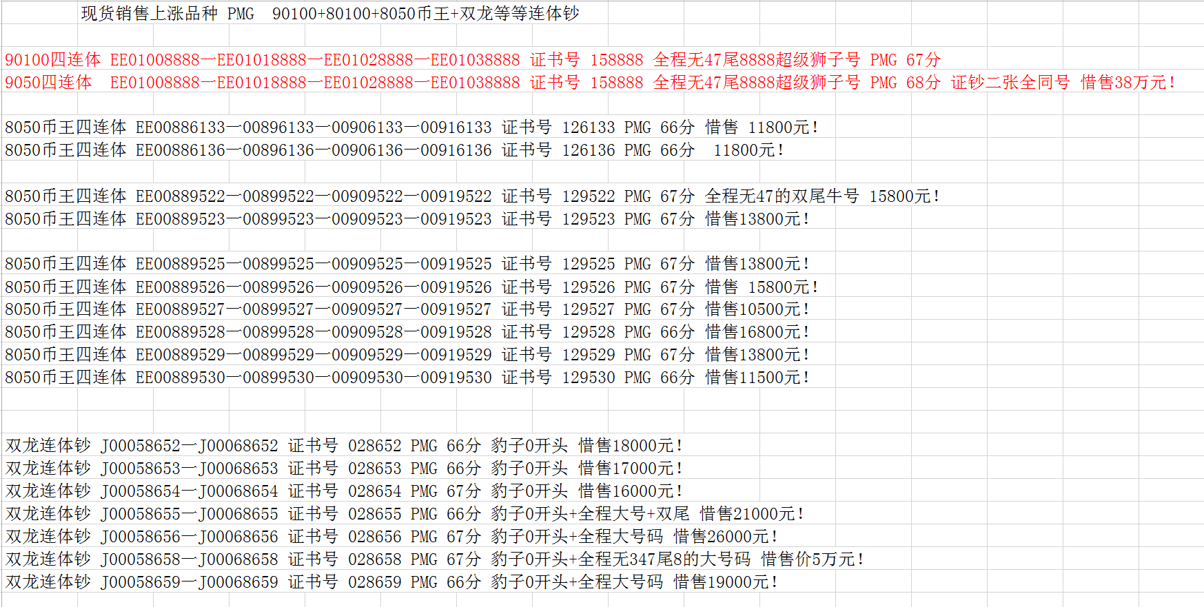 評級普通(精制)紀念幣交易