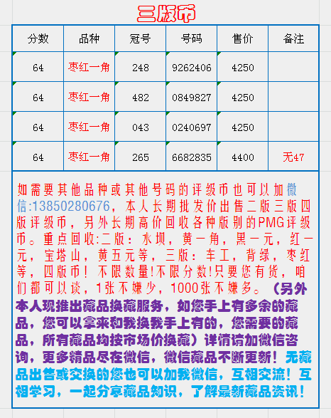 無47棗紅幾張,裸幣價(jià) ..