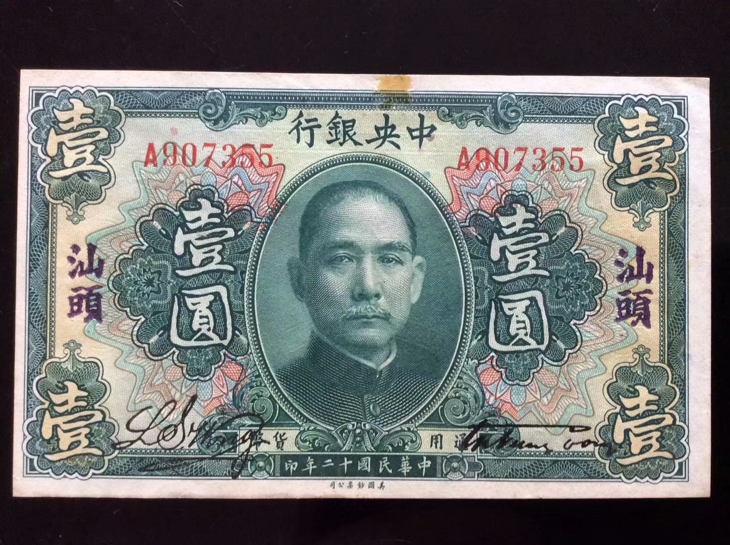 [font=punctuation, pingfangsc-regular, "]1923年中央銀行加汕頭地名壹圓原票保真,票子全新直板,顏色鮮艷脆響硬手,