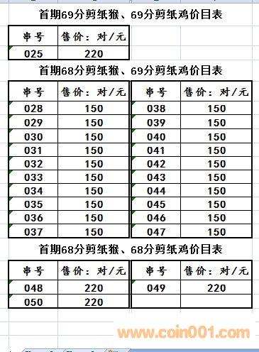 出售首期猴、首期雞評(píng)級(jí)幣!