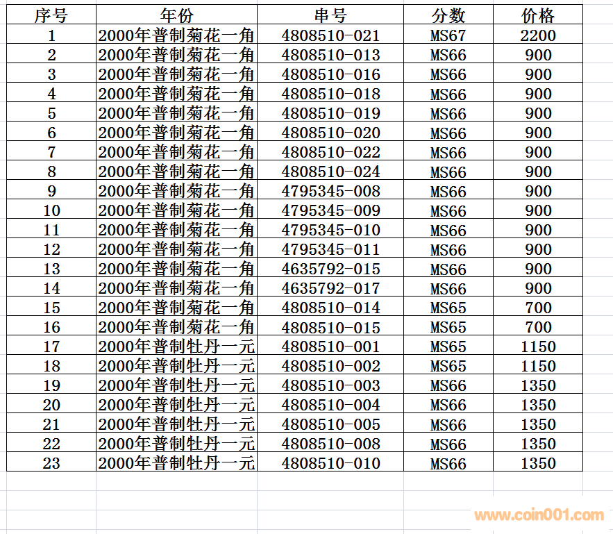 出2000年普制雙花