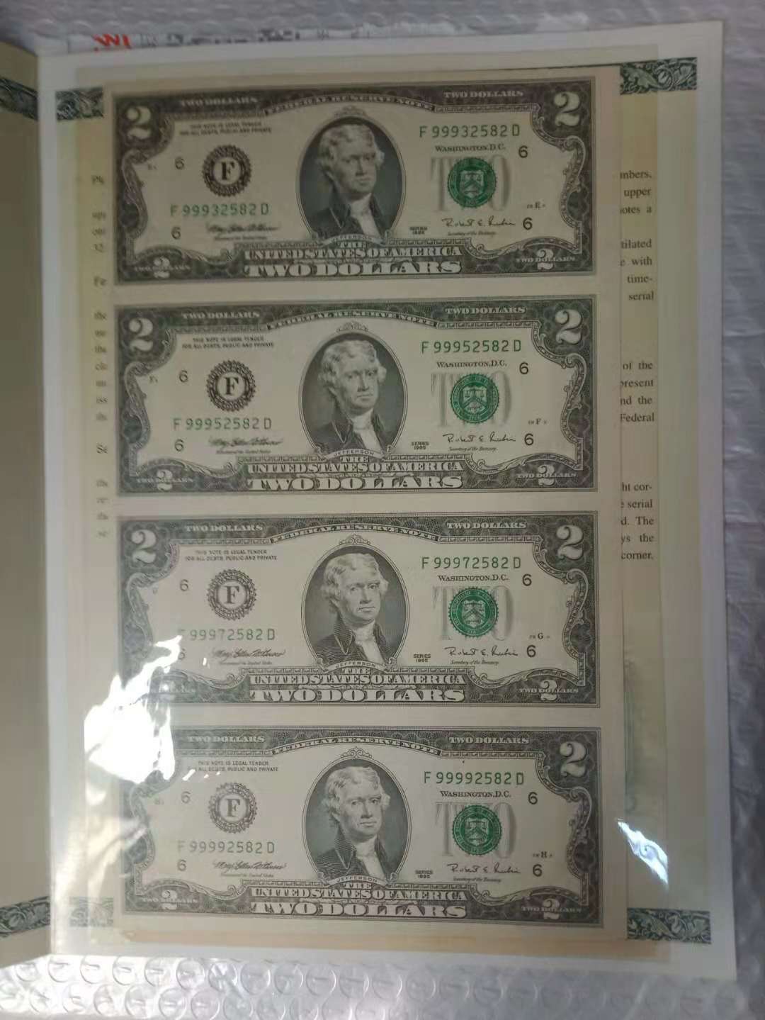 1995兩美元四連體鈔, ..