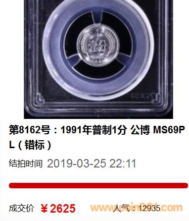 敬請(qǐng)關(guān)注第8162號(hào):1991年普制1分 公博 MS69PL(錯(cuò)標(biāo))